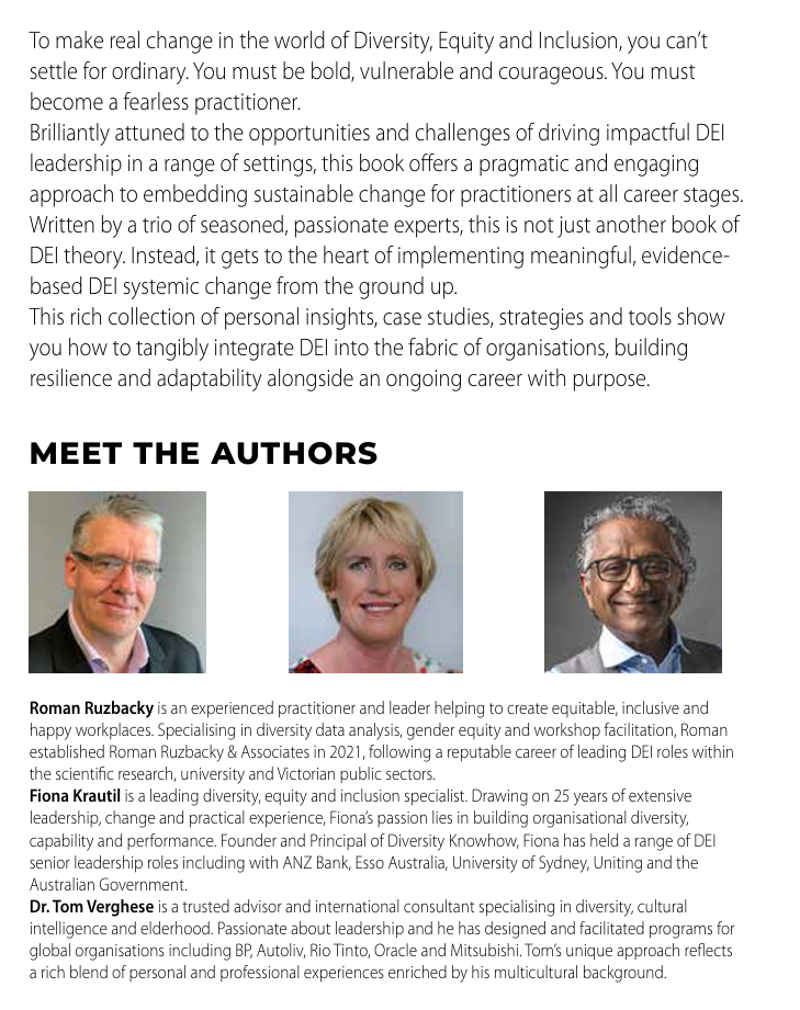 This rich collection of personal insights, case studies, strategies and tools show you how to tangibly integrate DEI into the fabric of organisations, building resilience and adaptability alongside an ongoing career with purpose.